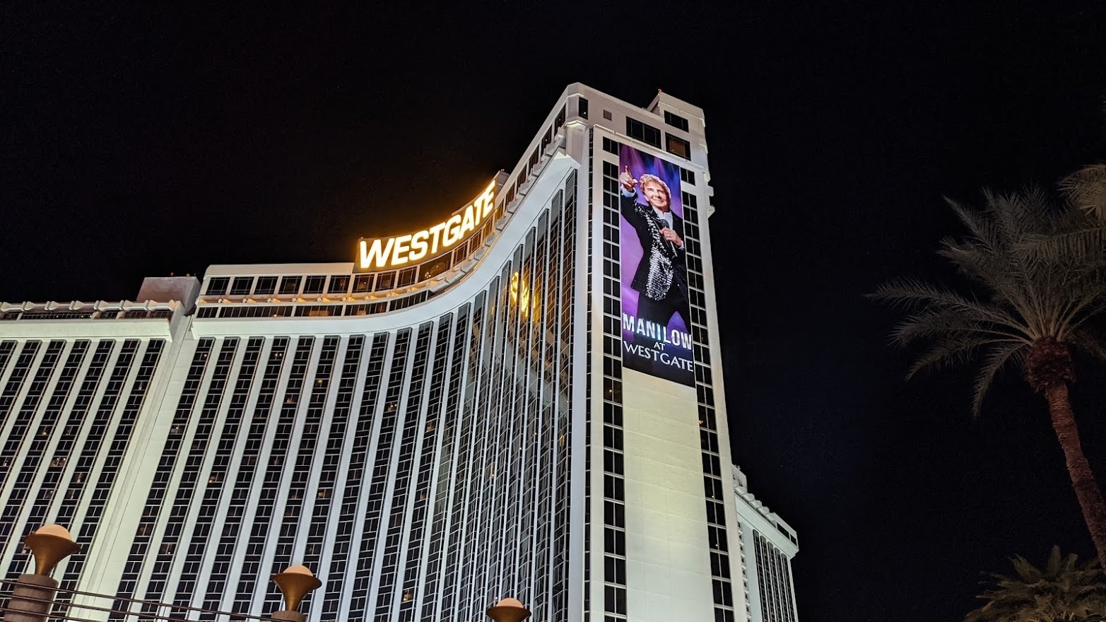 Westgate Las Vegas. Eager "Fanilows" started assembling well before 6 pm to get a glimpse of the star. The towering resort, which has been home to other legends like