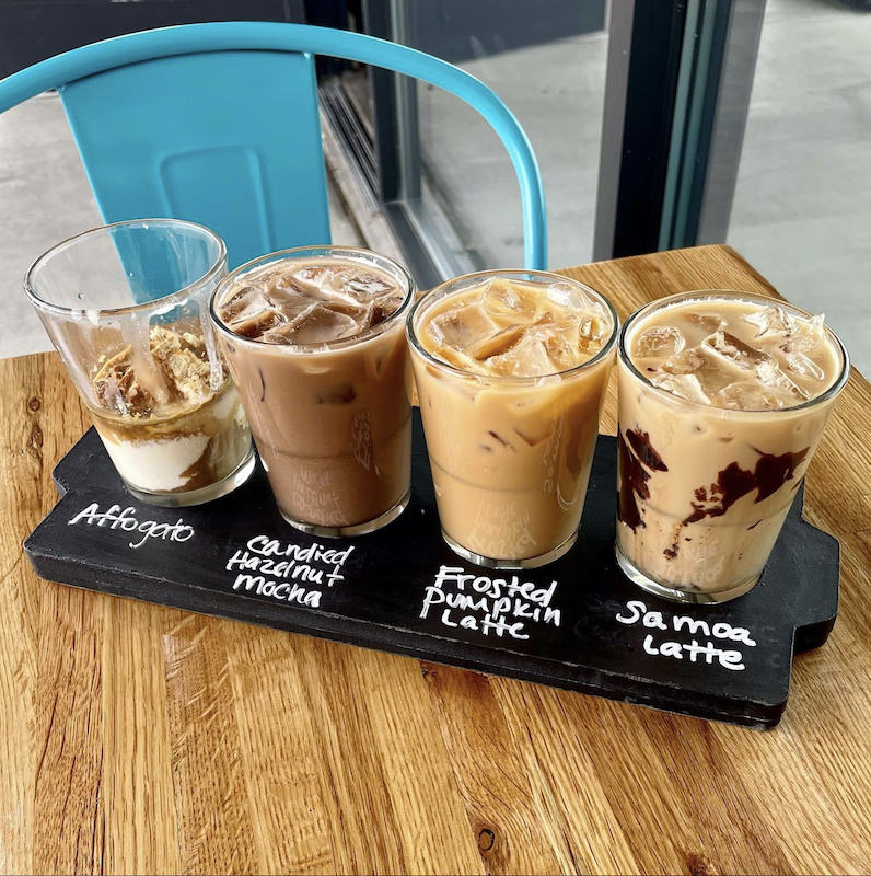 Choices include Teddy Graham, Funky Monkey Mocha, Chocolate Covered Strawberry, Maple Brown Sugar Cold Brew, Lavender Honey, Affogato, Pumpkin Spice, French Toast Cold Brew, Almond Joy, Cherry Bomb, and Blueberry Cobbler Cold Brew. In fact, you may have a hard time narrowing it down! Their menu of unusual flavors is a coffee lover’s dream.