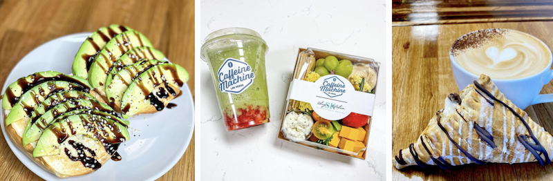 In addition to coffee, Caffeine Machine also puts a spring in your step by serving handcrafted Matcha, colorful homemade energy drinks, refreshing lemonades, iced teas, mocktails, and blended drinks.