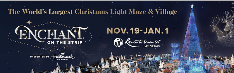 Resorts World will house Enchant: The World’s Largest Christmas Light Maze and Village this holiday season! Last year the Las Vegas Ballpark hosted this outdoor seasonal attraction from the Hallmark Channel. This year it will be on the Strip as well. This featured experience will open on Saturday, November 19, and continue through New Year’s Day.