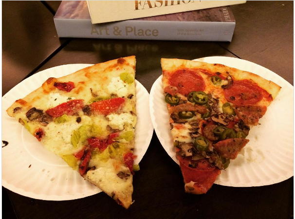 Other items on the menu include regular specialty pizzas, soups, and salads. The pizza place is adjacent to a full bar with signature beers, wines, and drinks. And you get to enjoy the quick slice while cheering your favorite team on HD TVs and an 8-foot HD projection screen.