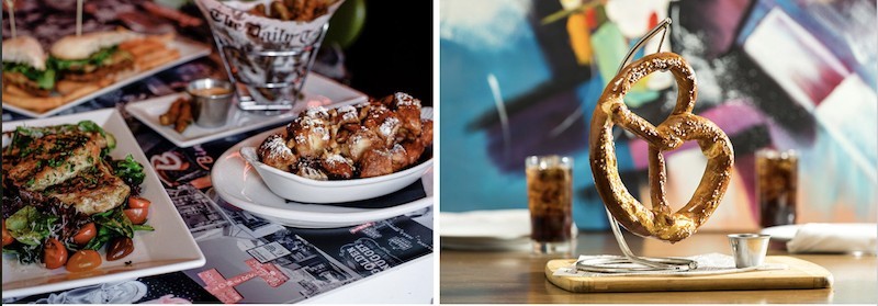 The Smashed Pig kicks bar food up a few notches. Share some Bacon Wrapped Peppers, Atomic Cauliflower, Pork Belly Tacos, or a Brewhouse Pretzel that s bigger than your head. Salads, burgers, and sandwiches like the Smashed Cubano and Sunday Chicken, plus Steak Frites and Blackened Salmon, are on the menu too.