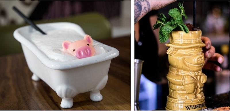 Pig Tails are what they call their specialty cocktails. The Hogwash is a gin-based drink that comes served in a mini bathtub with a rubber pig; it s too cute! Malibu s Most Wanted, The French Cowboy, Gettin Ginny Wit It, and Dealer s Choice are also fun creations. Locally made Lovelady beer is available too. Stop by between 4 pm and 6 pm Wednesday through Friday for