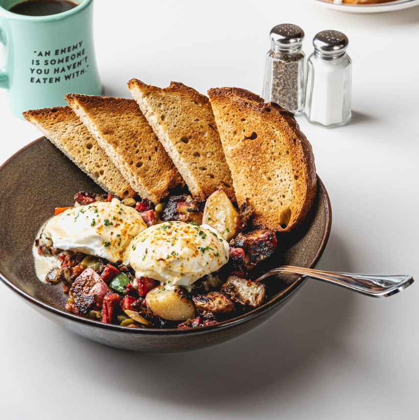 Breakfast at Saginaw’s Delicatessen happens 24/7/ Located within the vibrant Circa Resort & Casino in Downtown Vegas, Saginaw’s offers comfort food and generous portions. Try their famous Aunt Grace’s Eggs Benedict.