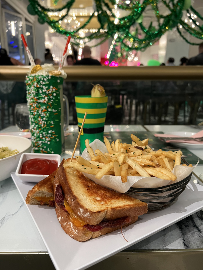 The entire restaurant is decked out in green streamers with inflatable photo opportunities, ensuring your social media followers know exactly how you're spending the holiday.