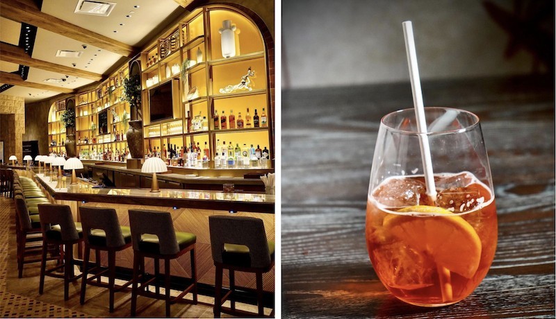 The lounge area is a nice spot to enjoy a drink before or after dinner. The space features a 50-foot-long bar that can seat up to 30! Try a Spritz, a refreshing bubbly Italian cocktail, or enjoy a glass of wine.