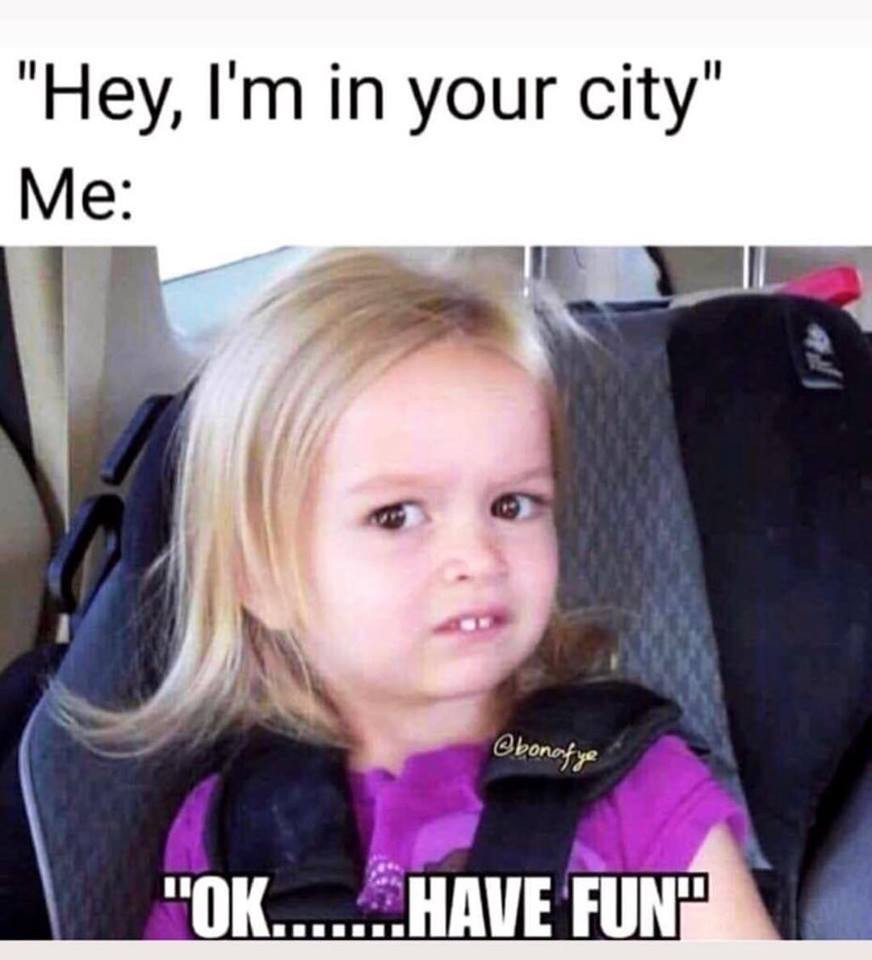 4. No, I can't take time away from work to show you around. Why should I use MY precious vacation days for YOUR vacation?