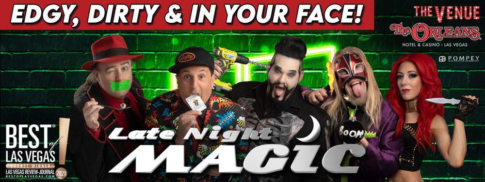 Adults-only LATE NIGHT MAGIC celebrated its first full year at Orleans Casino on June 1st. Starring John Shaw, Hollie England, Bizarro, The Shocker, and hosted by Doug "Lefty" Leferovich, LATE NIGHT MAGIC performs at The Venue on Saturday nights at 9 pm. Get tickets by heading here.